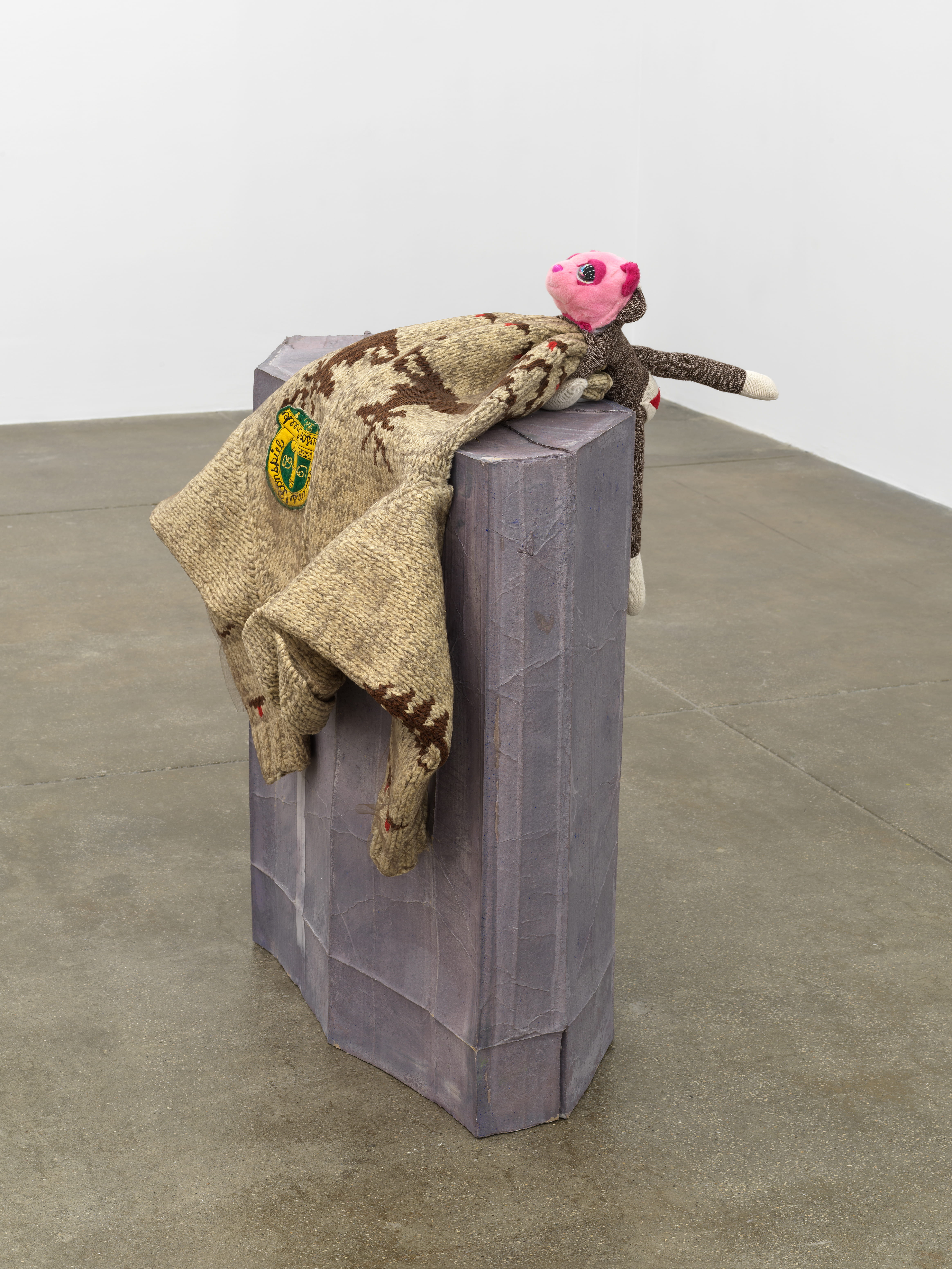 Being a sculptor I have this problem with the presentation. Because gravity is a big part of the practice, things have to sit someplace and I don't want them on plinths - that is a big rule - as that will separate them from the rest of your environment. I want them to be coexistent with all the objects in your life. Sometimes with sculpture, the beauty of it is that it is coexistent with other objects and you have a little more trouble discerning where it begins and where it ends. Whereas with painting it is fairly obvious, and in that way more intellectual, because you have to make an agreement, that this is artwork on the wall, not dealing with gravity. As an artist, I want to acknowledge the difference between an object and an image. I am sort of making images but I want them to maintain their object-ness and to do this I have to find a way to present them. I often borrow display methods that you might see objects being presented to you. In the case of the lion (‘Coiffed, 2020’), I was thinking of flea markets. I have been to many flea markets where the vendors just put their stuff on the ground. They are doing my job, they are putting things together that don't belong together - and when you look at them and there is a new cosmology of meaning. So maybe they are the best sculptors I know!