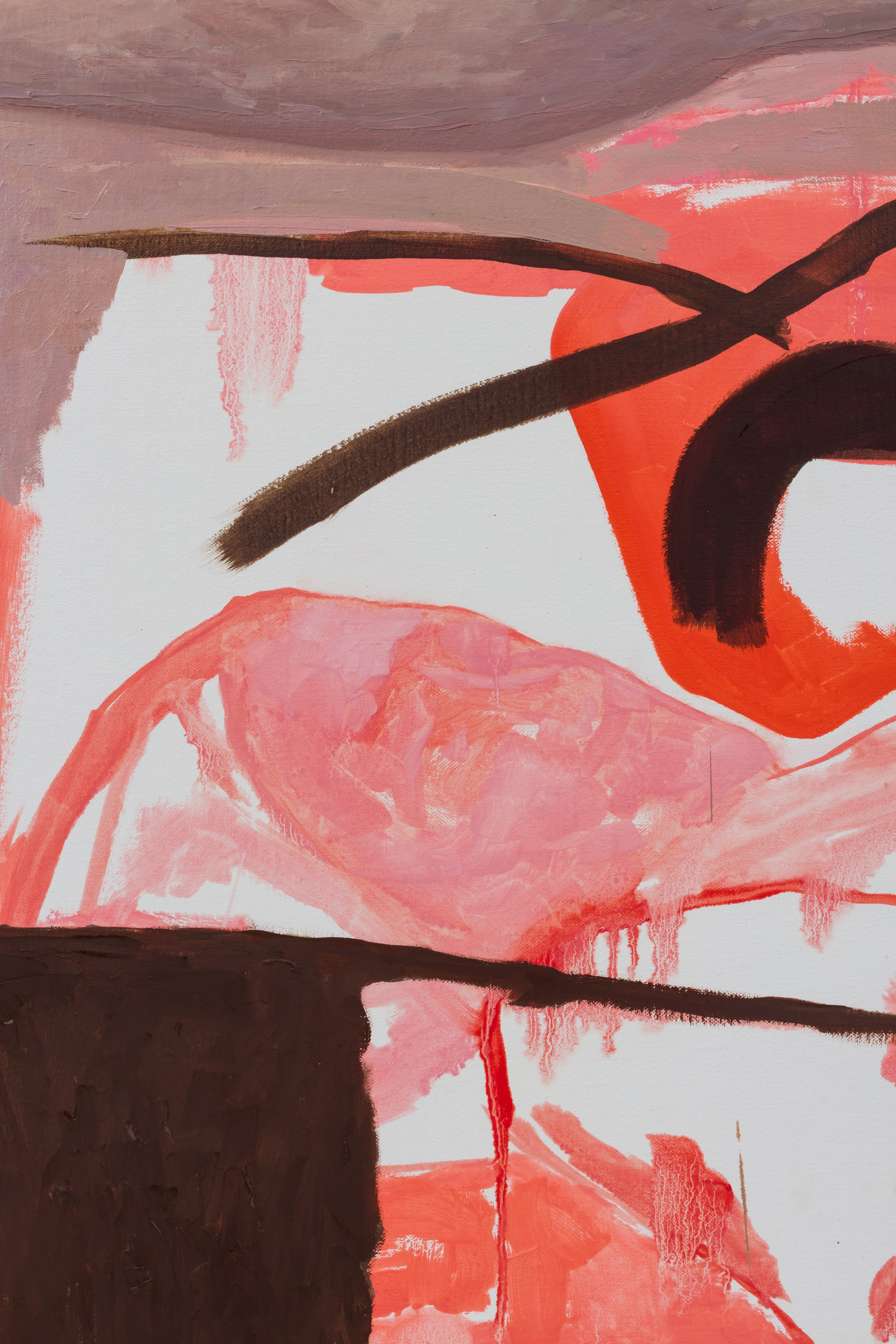 It’s a difficult question. I wanted to make a painting in which the format itself – the height, proportions, and all the elements that define it as an object – took precedence over the content, the body, or the figure. I’ve done something similar before, but with a different result. Instead of starting with the figure and sizing the canvas accordingly, I first considered the wall or space the painting would occupy. This one is about 180 cm in height, human-sized. By starting with the format, the figure becomes subordinated, and it allows me to explore the dynamic between form and subject. It’s another iteration of the same idea.