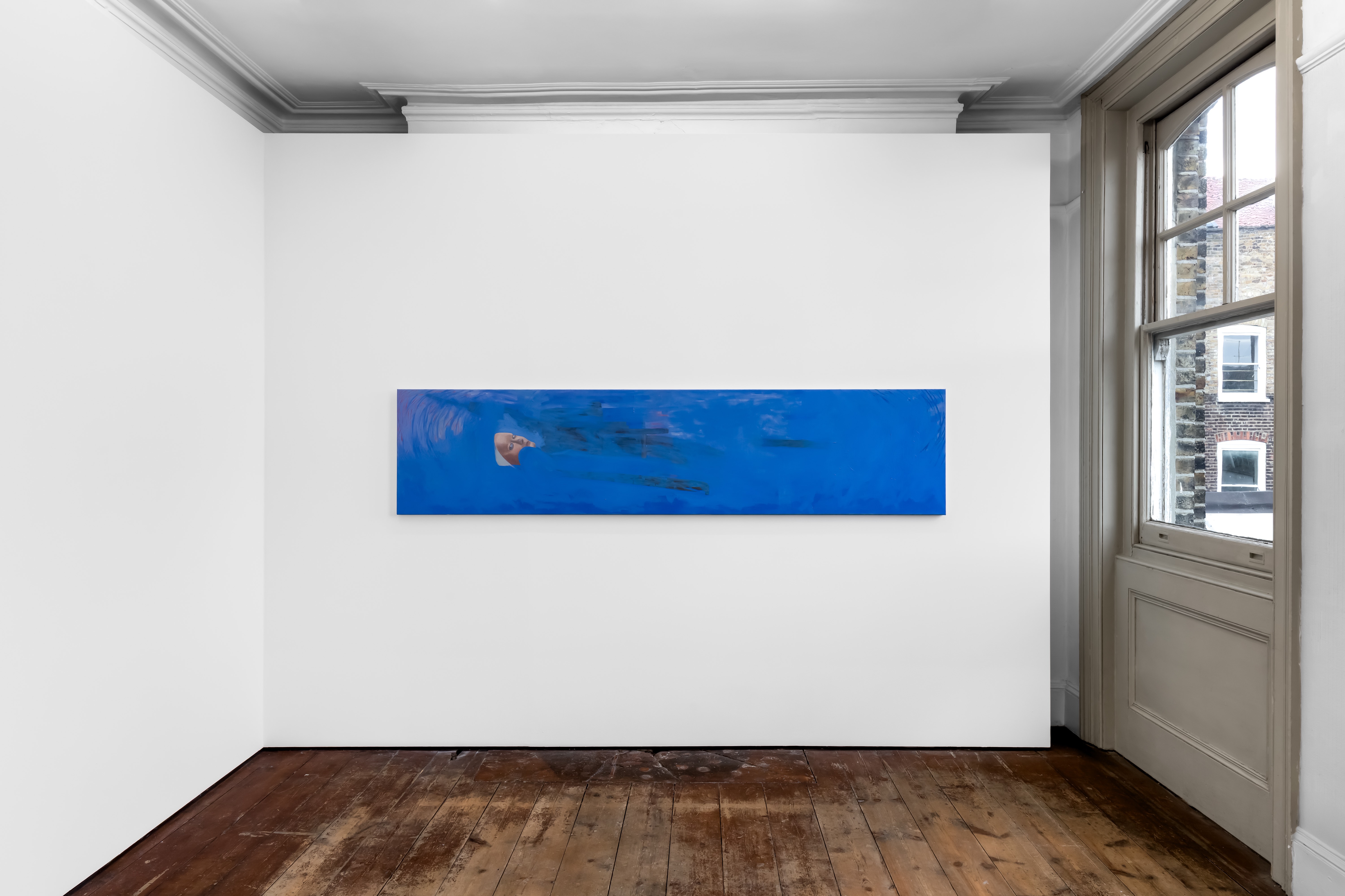 Yes, exactly. I like the idea of a container in relation to my work because it operates on multiple levels. It works for the painting itself and for the body depicted in it. When I start a painting, I choose a format and make a drawing of the figure. I spend a lot of time considering the ratio between the figure and the canvas the size of the painting as an object. From there, how much of the figure remains visible in the final painting is unknown to me. For example, in Blue Function, there’s a figurative figure beneath the surface, partially hidden under swaths of blue. There’s always a balance to negotiate: what to preserve and what to paint over.